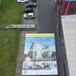 Mesh-Banner – gefertigt aus fein gelochtem Material, das leicht transparent und winddurchlässig ist. Geeignet bei stärkerem Wind, daher kommt Mesh vor allem an Fassaden oder an Gerüsten zum Einsatz.